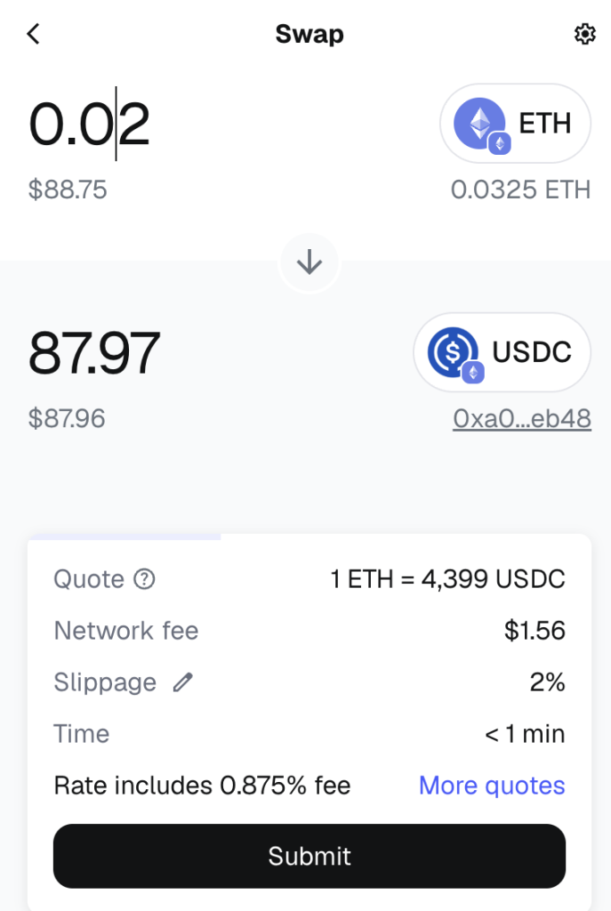 See the network fee? That’s the price I need to pay for swapping ETH to USDC ($1.56).